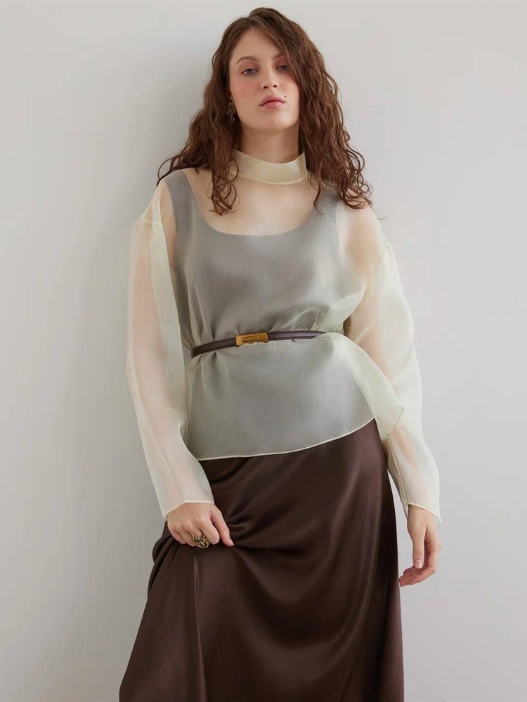БЛУЗКА из органзы, минималистичная с воротником-стойкой (сливочно-желтый)