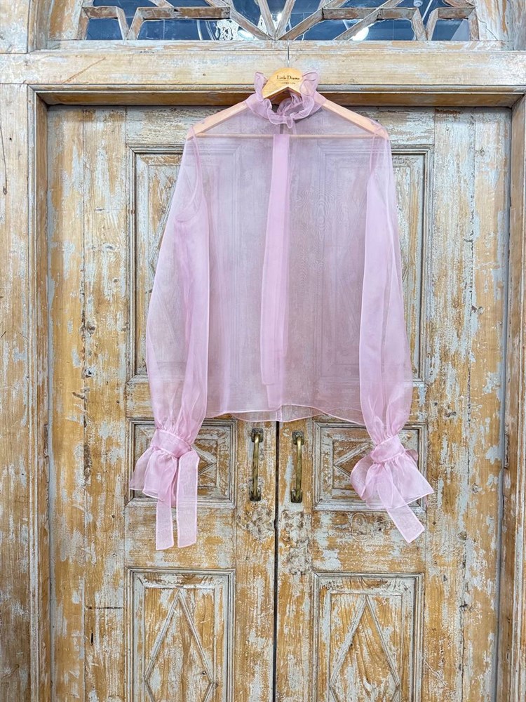 БЛУЗКА (ОРГАНЗА, пышные рукава, воротник-стойка с рюшами, РОЗА АНТИК)