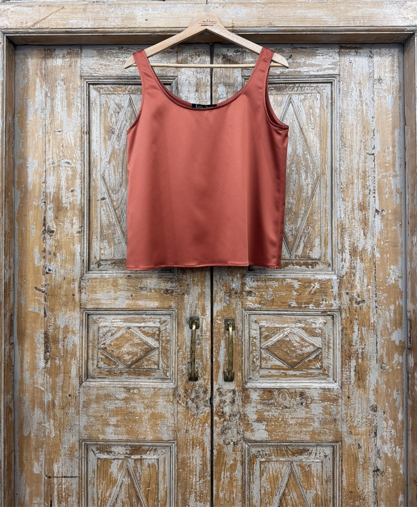 БЛУЗКА "топ-майка" с круглым вырезом (из мягкого атласа), ТЕРРАКОТ