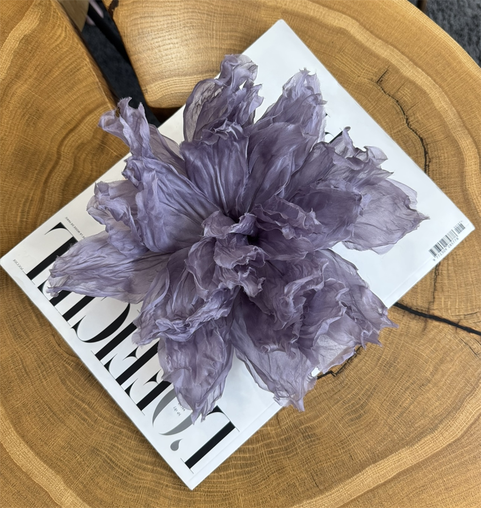 Брошь-цветок ПИОНА, МИДИ, диаметр 25-26 см. Булавка, прищепка, отверстие для ленты-чокера.