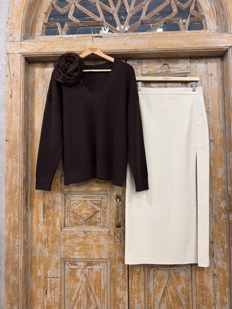 ДЖЕМПЕР двусторонний (V-образный и круглый вырез) из хлопка, ШОКОЛАДНЫЙ