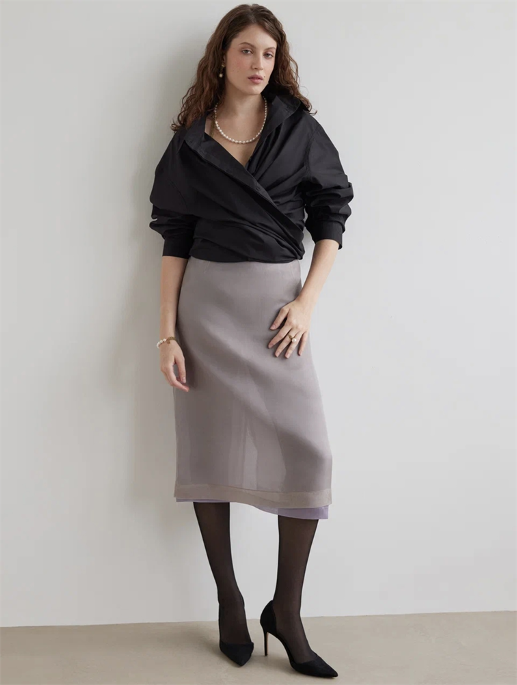 ЮБКА-карандаш из шелковой органзы (без подкладки, бежевый TAUPE)