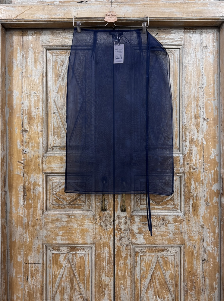 ЮБКА-карандаш из шелковой органзы на завязке, D-80 (без подкладки, темно-синий)