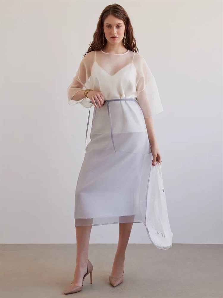 ЮБКА-карандаш из шелковой органзы на завязке, D-82 (без подкладки, жемчужно-серый)