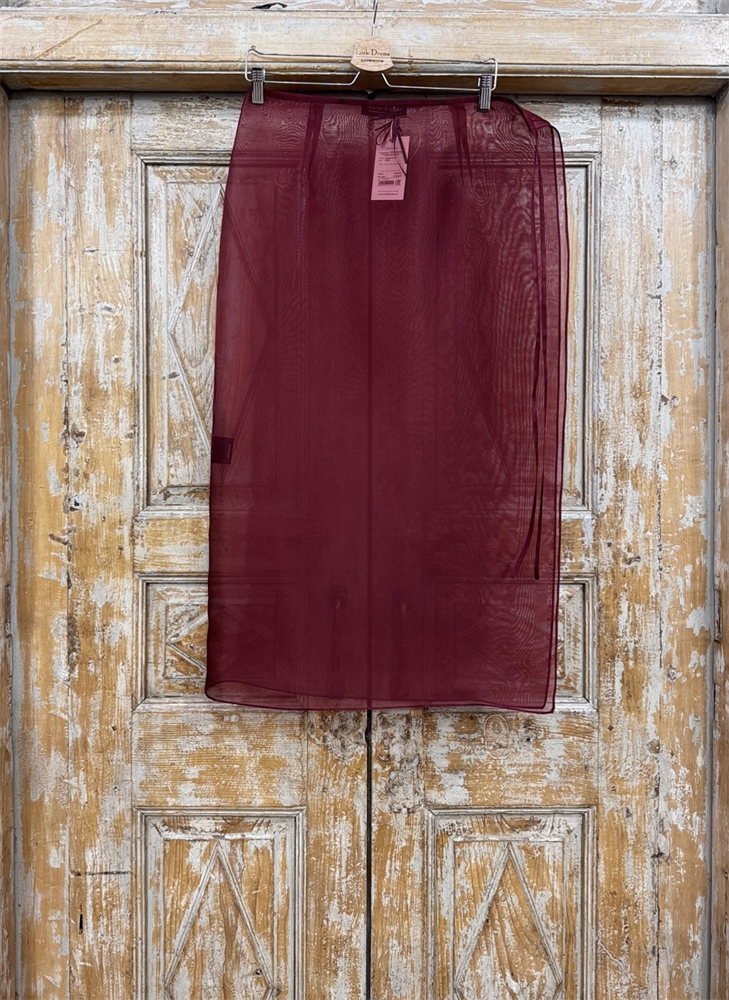 ЮБКА-карандаш из шелковой органзы на завязке, D-90 (без подкладки, БОРДО)