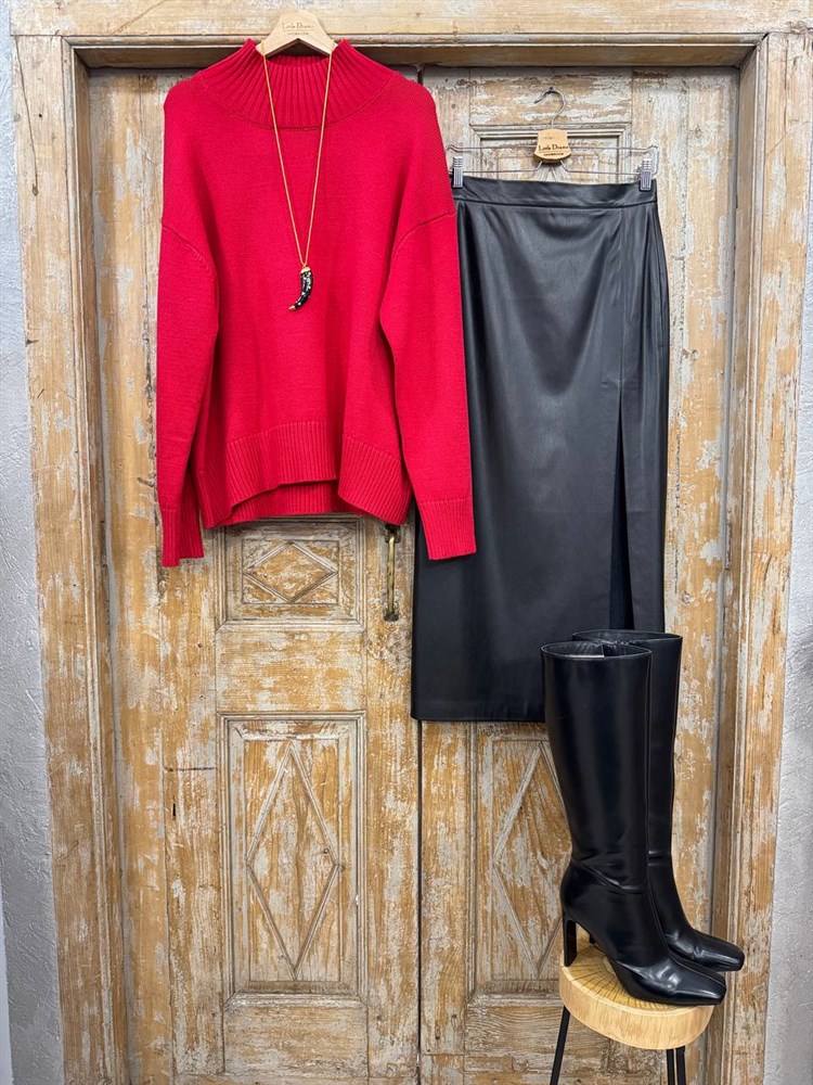 ЮБКА карандаш миди с разрезом (из ЭКО-кожи)