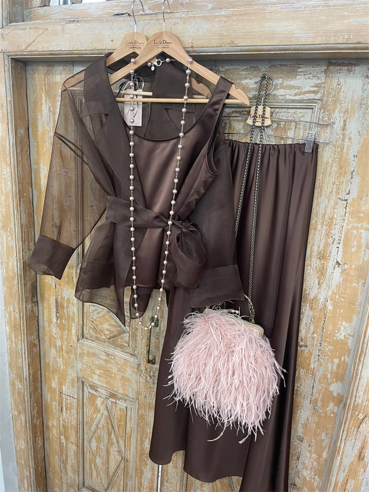 ЮБКА трапеция по косой двойная двусторонняя, длина 100 см от талии (из мягкого атласа), КОФЕЙНО-ШОКОЛАДНАЯ