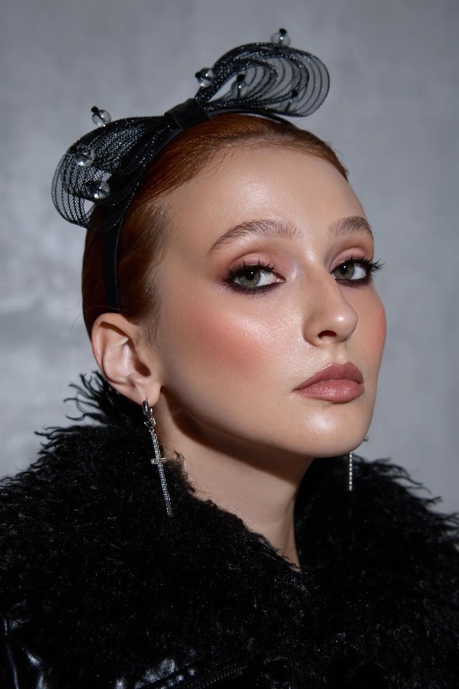 Ободок из с бантом из сетки с прозрачными бусинами by Beretkah