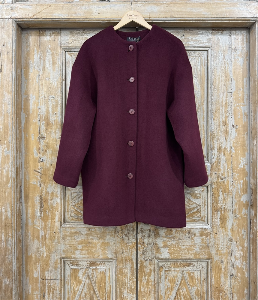 ПАЛЬТО в стиле oversize, с круглым вырезом, без воротника, на пуговицах (из шерсти с кашемиром, МАРСАЛА)