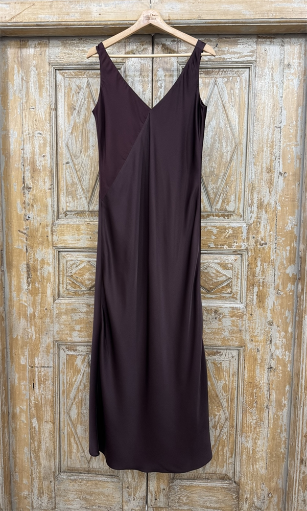 ПЛАТЬЕ КОМБИНАЦИЯ (МИДИ D-80, двустороннее, двойное, на широких бретелях, из атласа "Armani), ИНЖИР