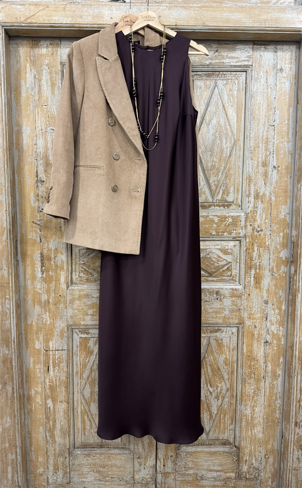ПЛАТЬЕ-комбинация с американской проймой (из премиум атласа ARMANI, двойное), ИНЖИР