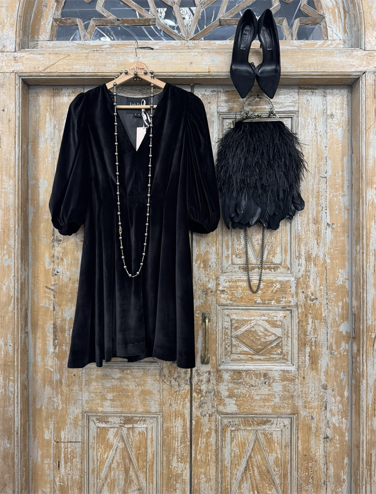ПЛАТЬЕ мини с V-вырезом, рукавами буфами, складками по талии (из бархата Elle Saab)