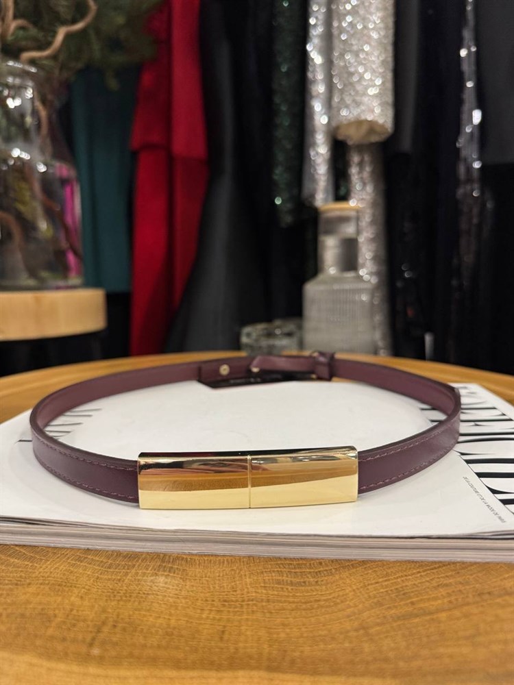 РЕМЕНЬ тонкий (1,5 см) из натуральной кожи с золотой пряжкой