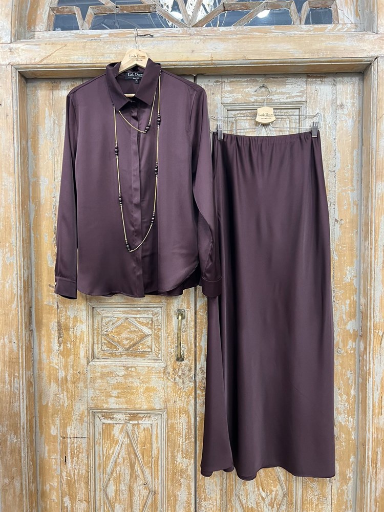 БЛУЗКА типа РУБАШКА классическая, с супатной застежкой из атласа "Armani". ДИ: 69 см по спинке