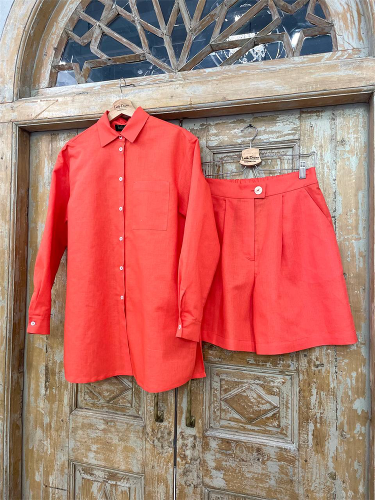 Длинная свободная круизная рубашка из льна, сзади на кокетке, со складкой на спинке. Лен Camelia (220 гр.м)