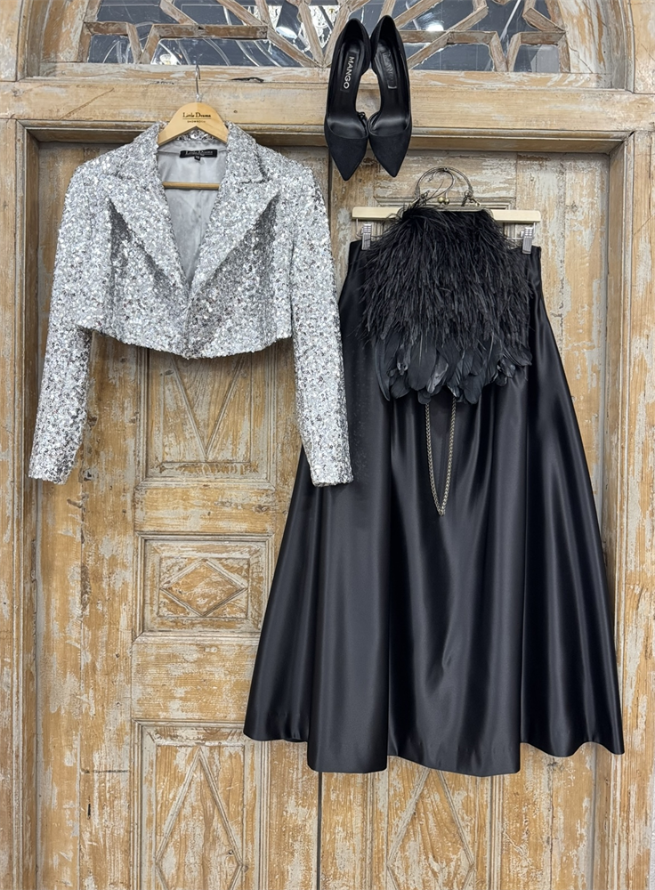 ЖАКЕТ-БОЛЕРО с острыми лацканами, двубортный, приталенный (из пайеток)