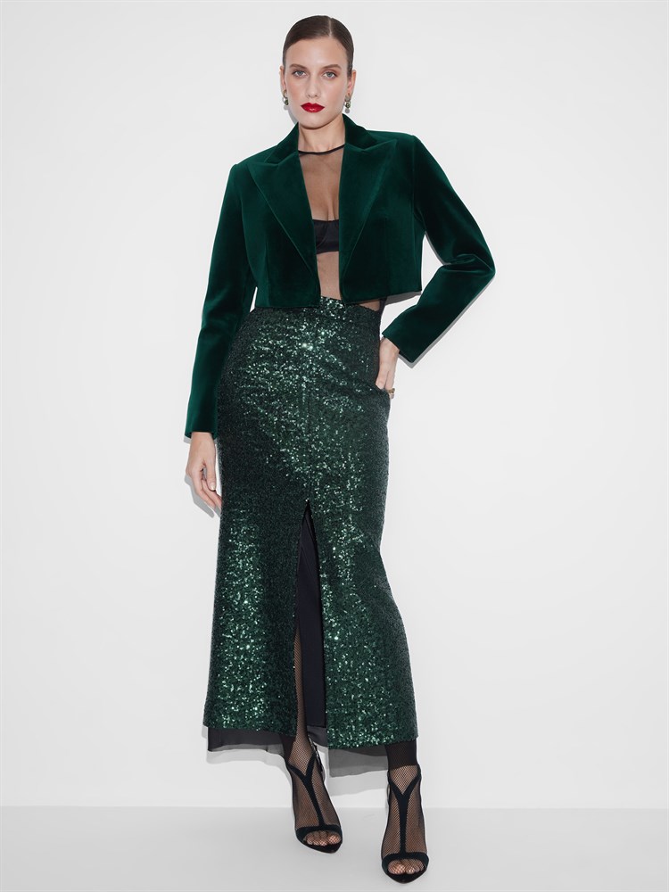ЖАКЕТ короткий "БОЛЕРО" с острыми лацканами, двубортный, приталенный (из изумрудного бархата )